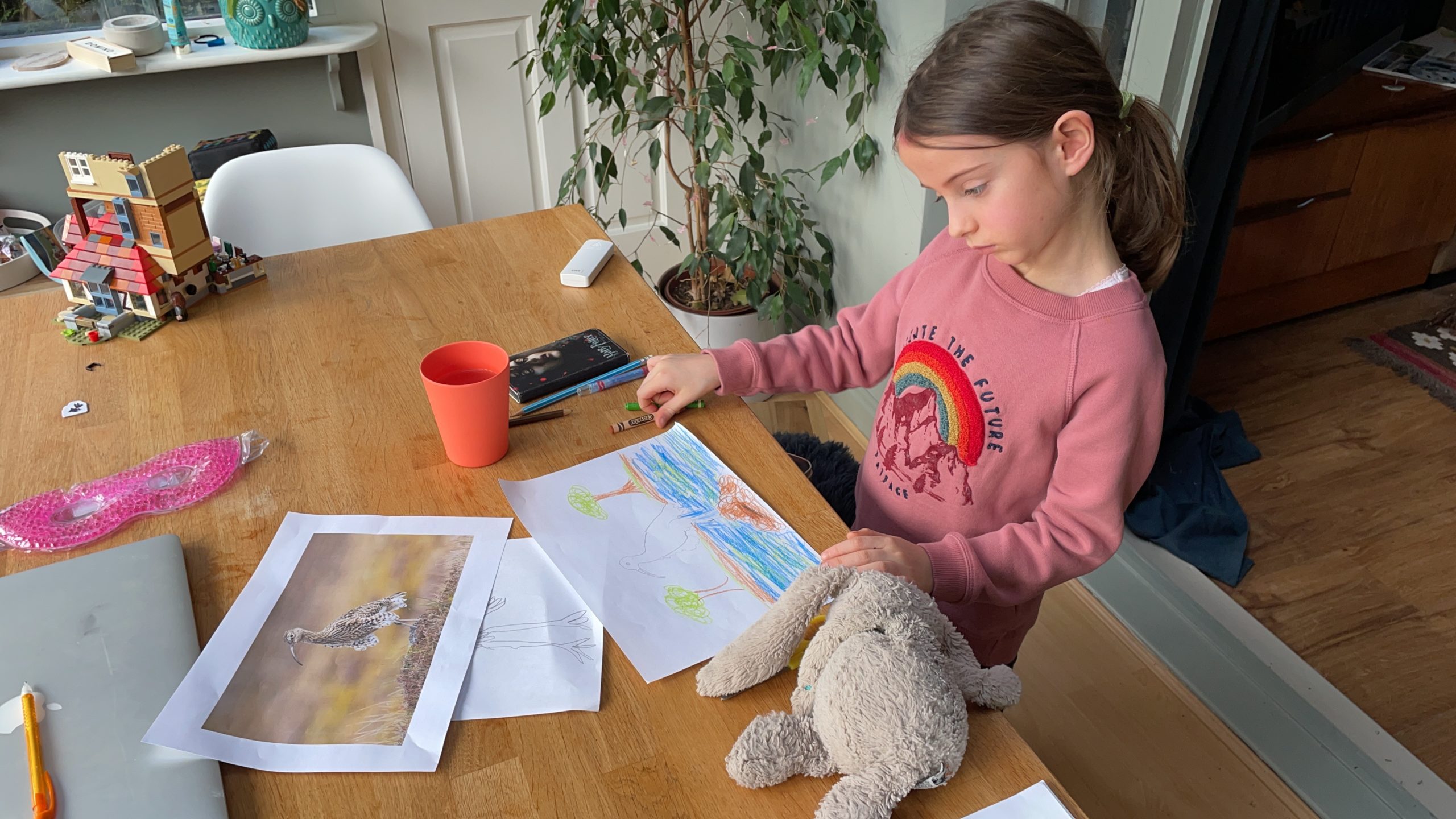 Today I made a picture of a… Curlew and if you have very good eye sight you might be able to see the little artist in the background, painting the Curlew, and all the rest.